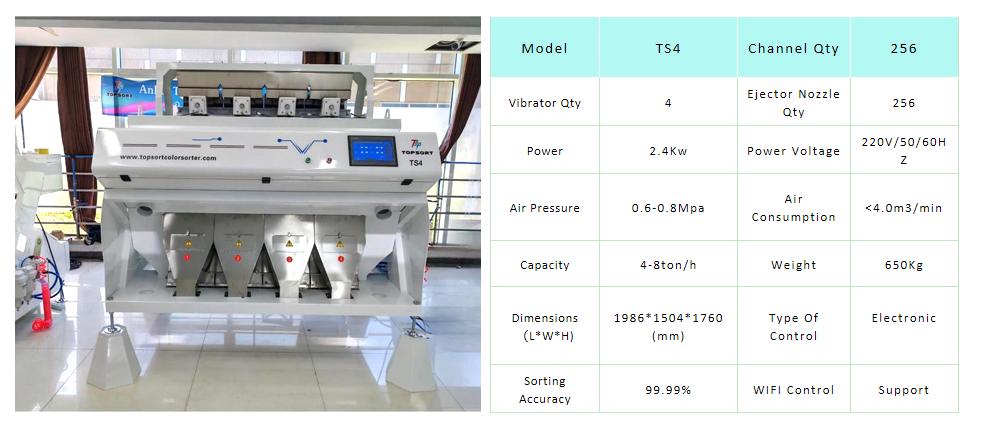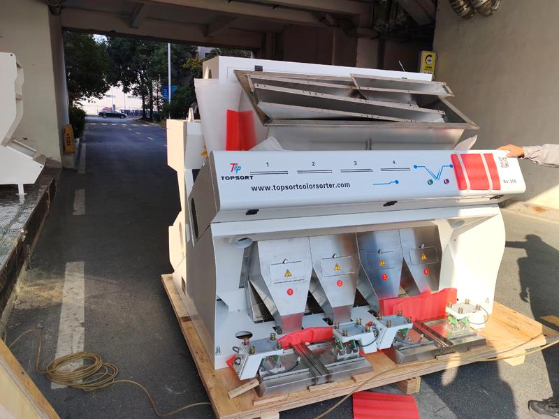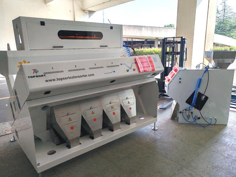 Color/size/quality sortingclasificador de color de trigo Se basa en el hecho de que los distintos colores tienen diferentes propiedades ópticas. Clasificador de colores Topsort Se utilizan cámaras CCD y sensores para detectar el color de cada grano y, posteriormente, clasificarlos en diferentes contenedores según su color. El proceso de clasificación se realiza mediante un sistema de aire comprimido que separa los granos por color; a continuación, se muestra un esquema de la estructura.