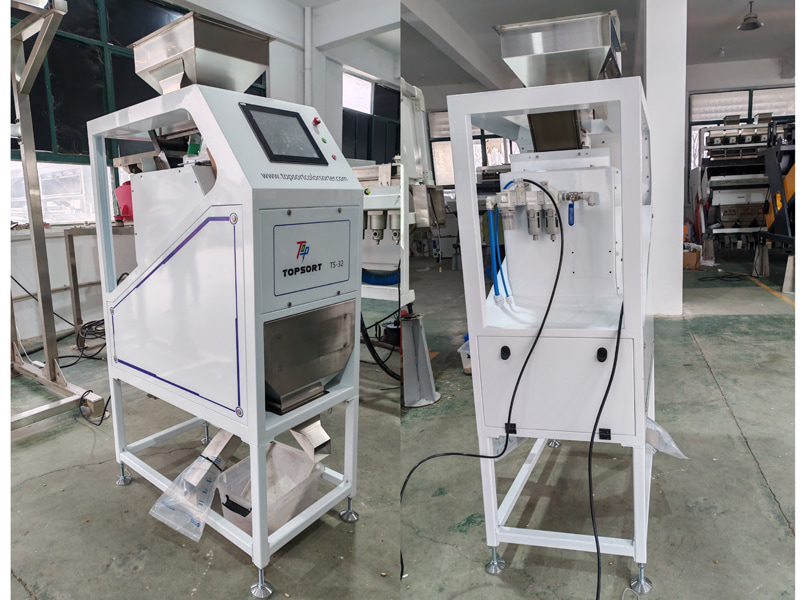 TOPSORT smallest ai deep learning color sorter is a new type of sorting machine that uses an deep learning technology to sort different colored beans based on their appearance and texture,can sort for wrinked and half beans or fine spots.This machine is commonly used in the food industry to separate defective and foreign materials from the good quality beans. The process of color sorting improves the overall quality of the beans, eliminates defects and contaminants, and ensures that only the best quality beans are packaged and sold to customers.